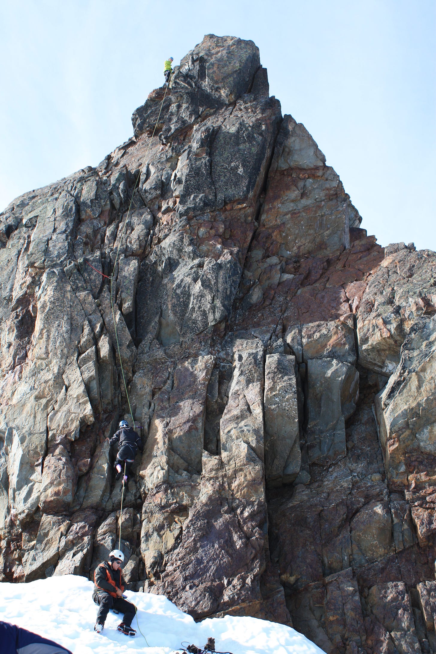 A five-day expedition to climb Mount Olympus (the Washington one), with Greg and Reece (and others). Greg tried to convince us that if we got struck by lightning our fingertips would fly off. I led the rock pitch to the summit with trad gear, which was my first time really trad climbing in the wild.
